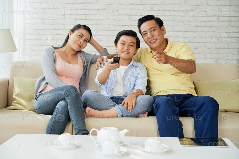 Семья смотрит телевизор