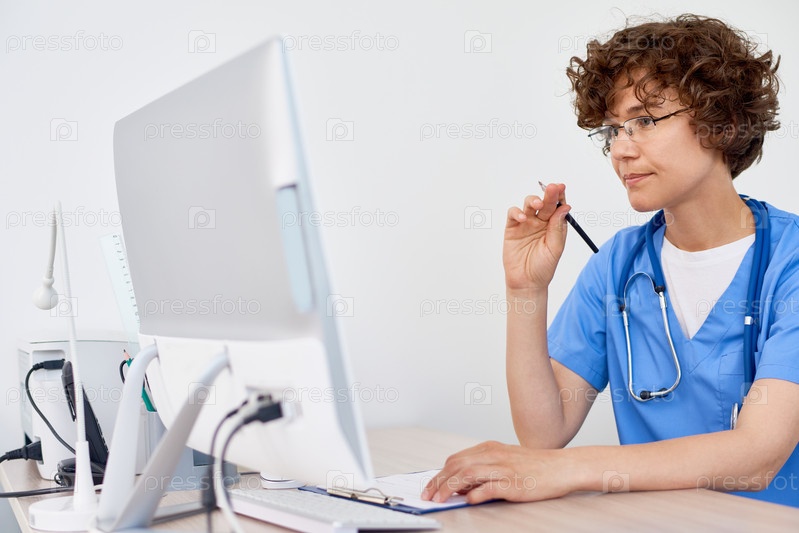 Молодая женщина-врач на столе