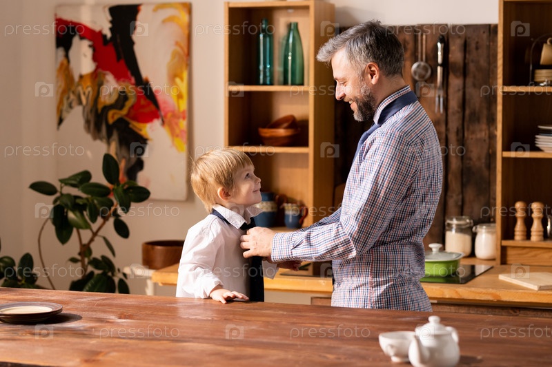 Отец связывает галстук своему маленькому сыну