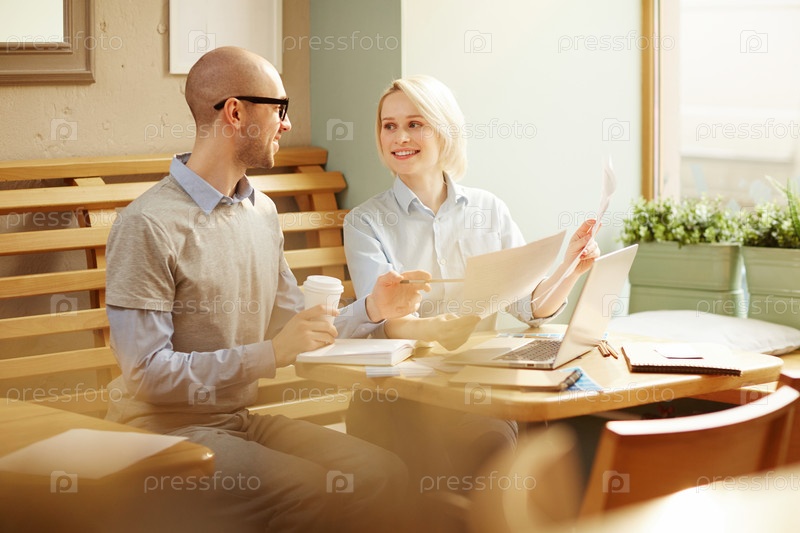 Счастливые коллеги по работе в кафе