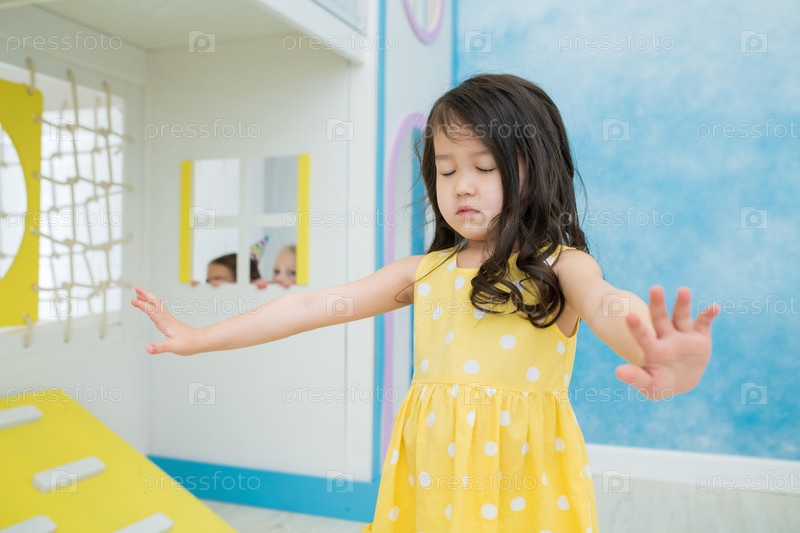 Девушка с закрытыми глазами, играющая в тег