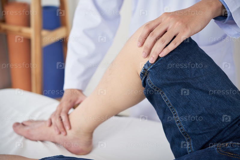 Урожайный врач массажирует ногу пациента
