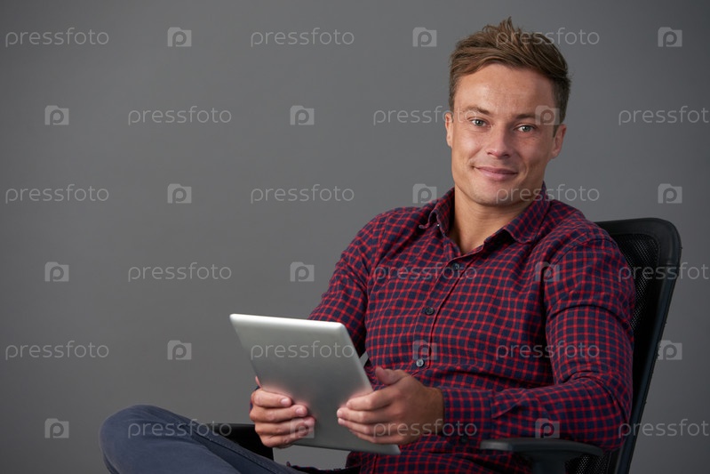Молодой человек с планшетным компьютером