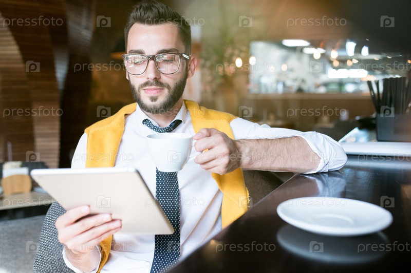 Бизнесмен использует планшет в баре