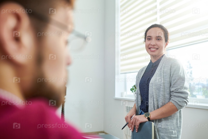 Красивая женщина разговаривает с коллегой