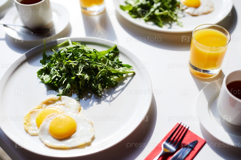 Жареные яйца с зеленью на завтрак