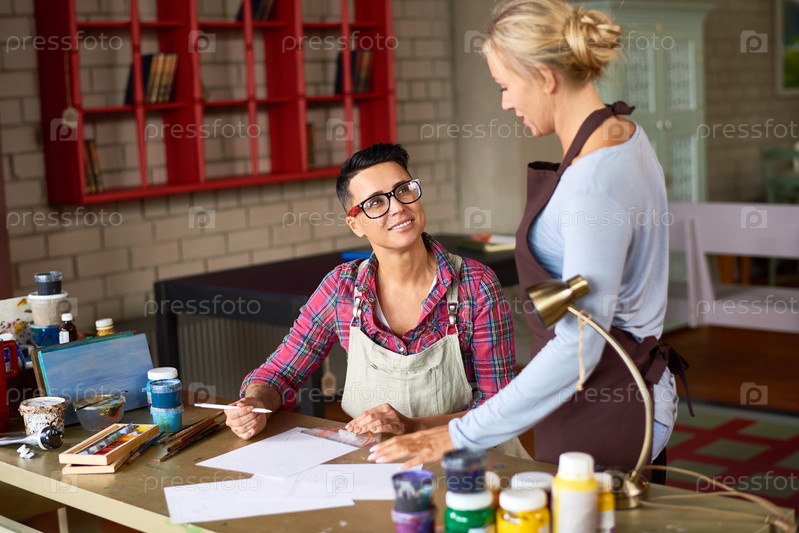 Два творческих художника работают в студии