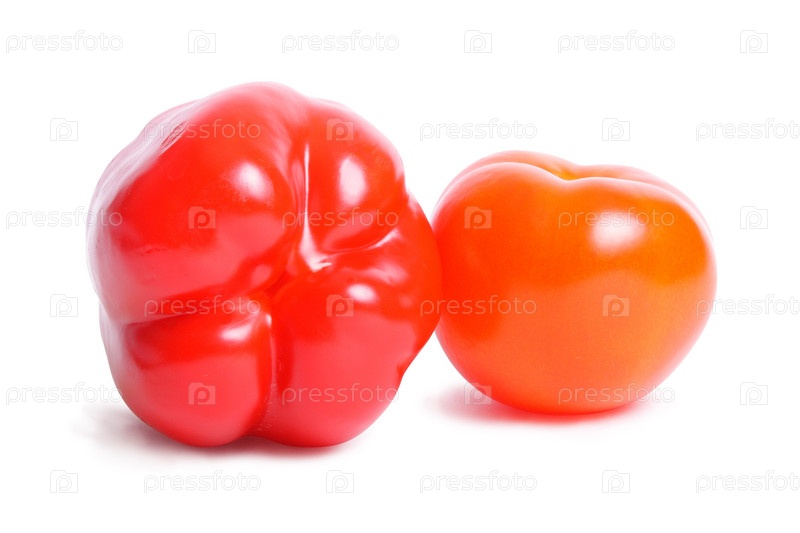 Красные помидор и перец на белом фоне