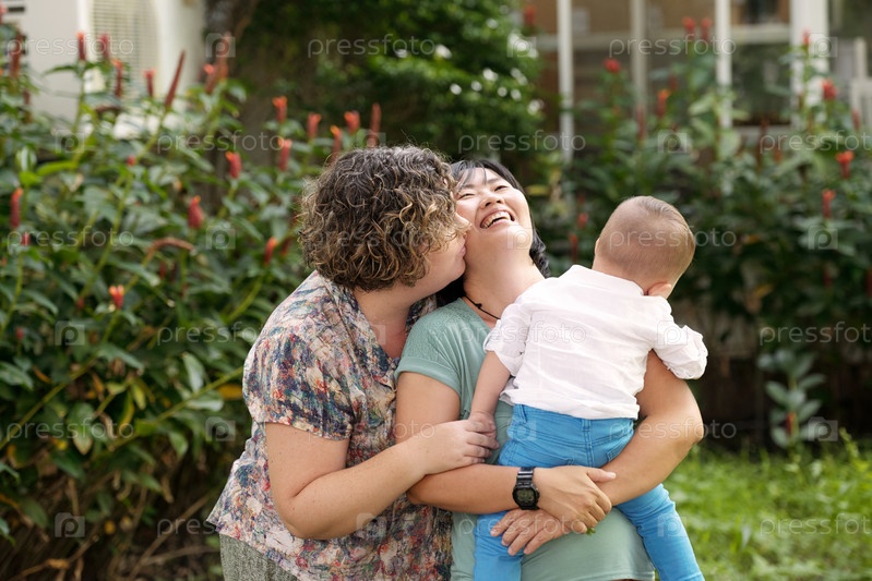 Женщина целует жену