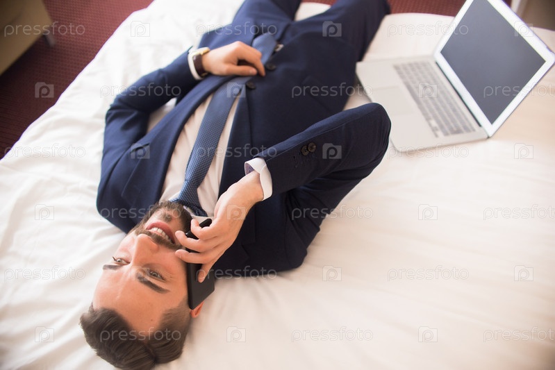 Бизнесмен, наслаждающийся гостиничным пребыванием