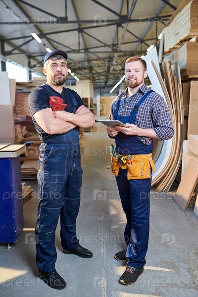 Уверенные работники в комбинезонах