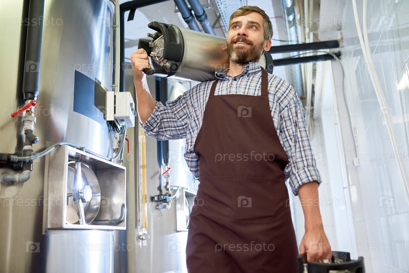 Бородатый пивовар с бутылками из пива