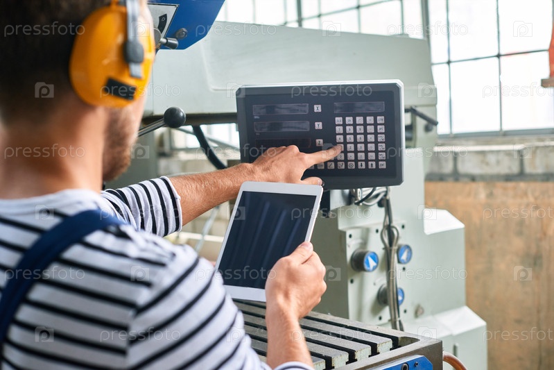 Оператор, использующий современные машинные единицы на заводе