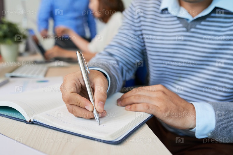 Crop casual man писать в блокноте
