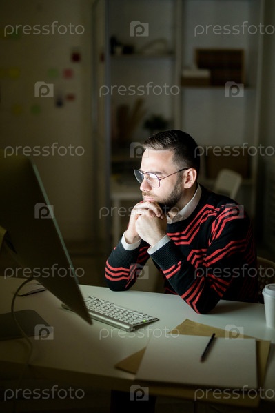 Концентрированный менеджер рассматривает отчет по ночам