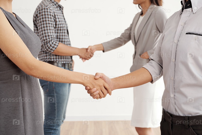 Коллеги по работе, пожавшие друг другу руки