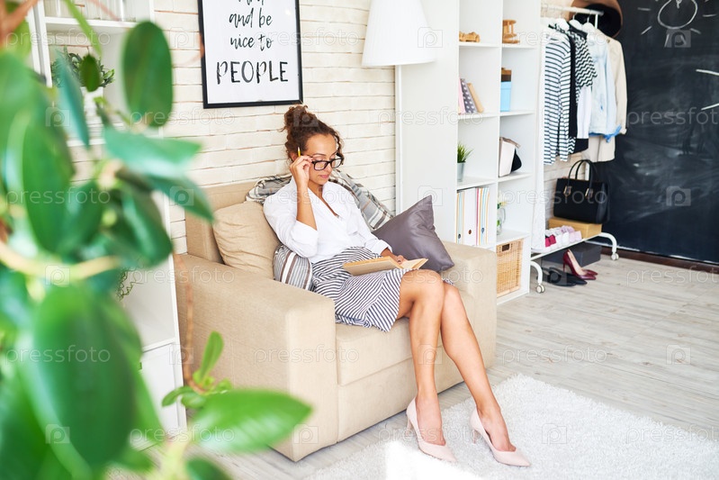 Элегантная молодая женщина читает книгу