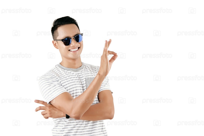 Парень, показывающий хороший жест счастья