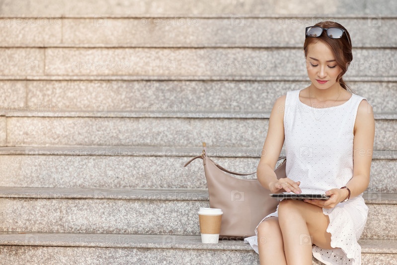 Красивая женщина, использующая приложение