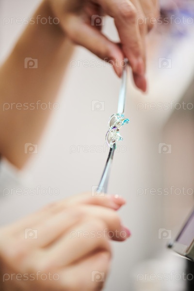Женщина, формирующая стекло в студии