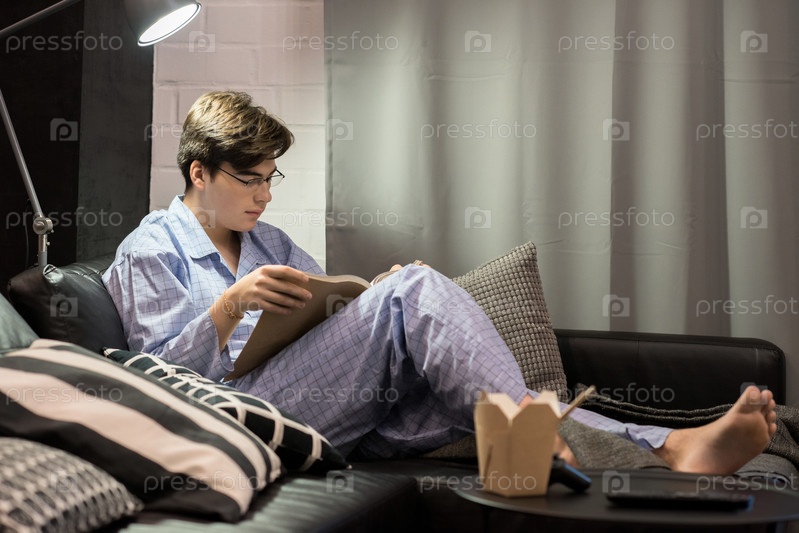 Мальчик читает книгу в пижаме