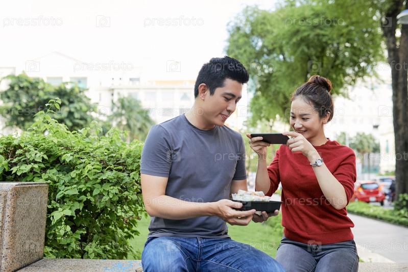 Пара фотографирует еду
