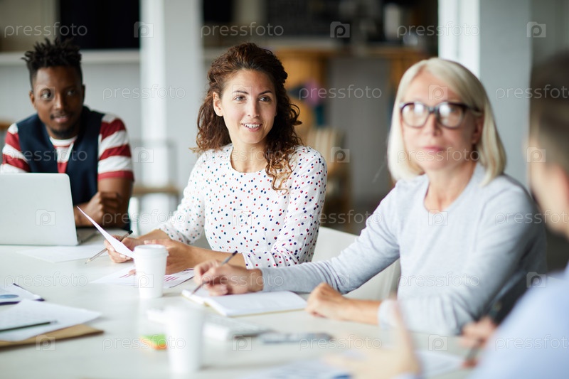 Деловая женщина, сидящая на совещании