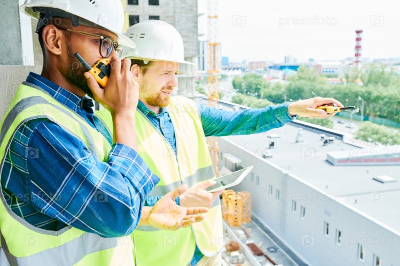 Два строительных работника на стройплощадке