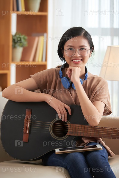 Красивая девушка играет на гитаре