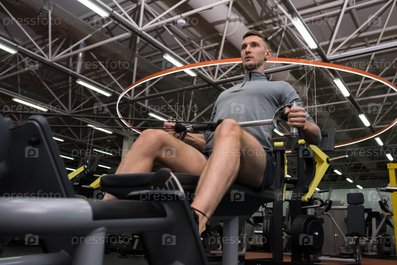 Спортсмен, использующий тренировочную машину в спортзале