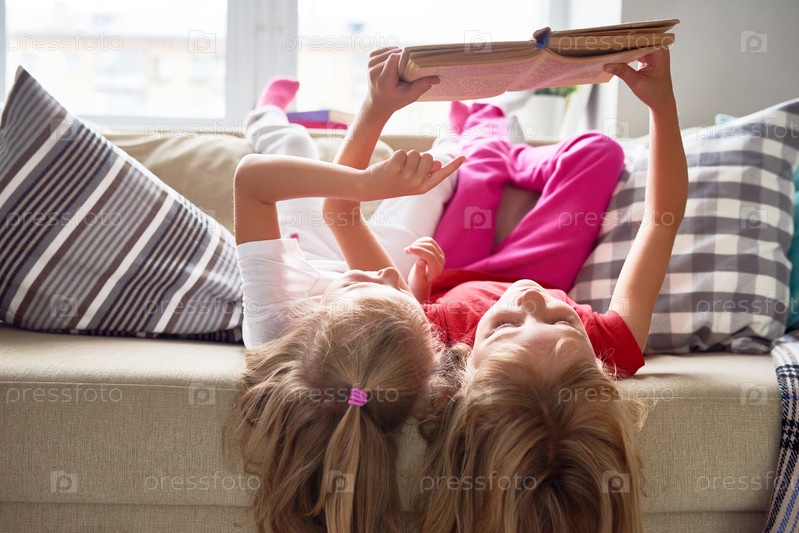 Маленькие девочки читают книги дома