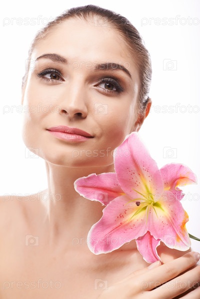 Красивая женщина с розовым цветом