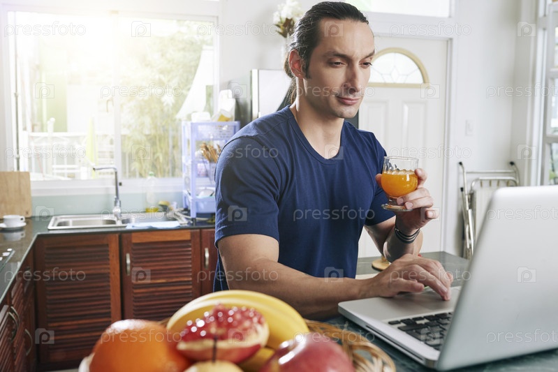 Молодой человек работает на кухне