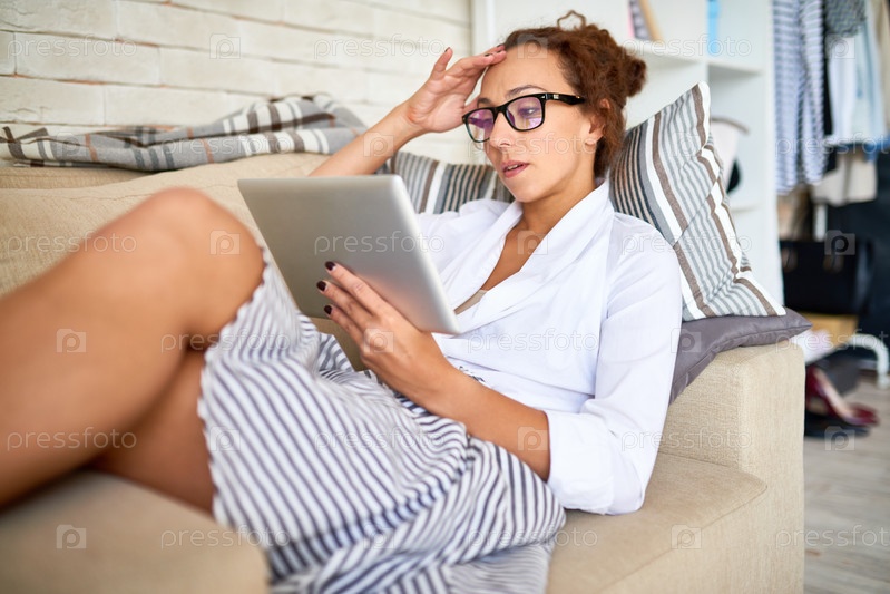 Женщина, читающая блоги через планшет