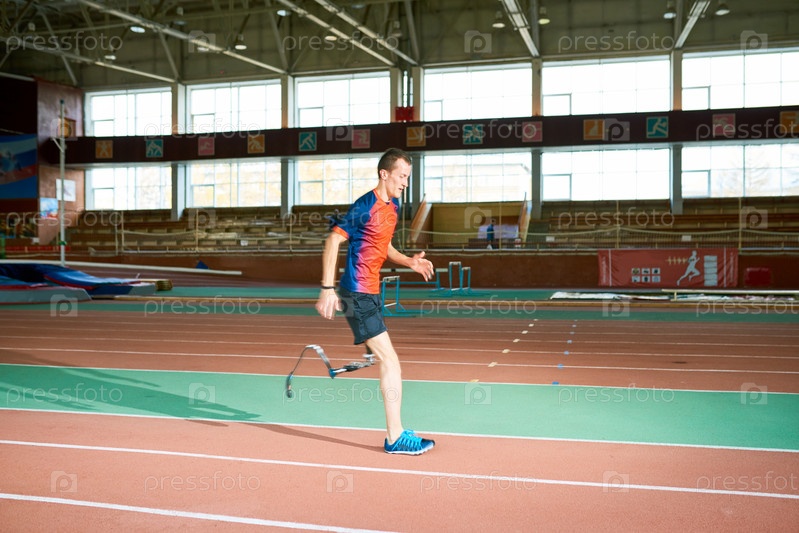 Инвалидный спортсмен бежит по трассе