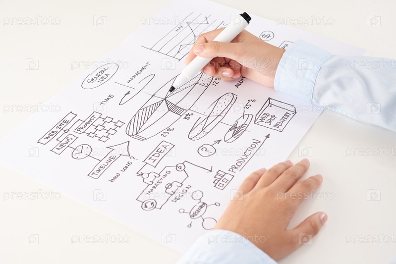 Урожайные руки рисуют бизнес-схему