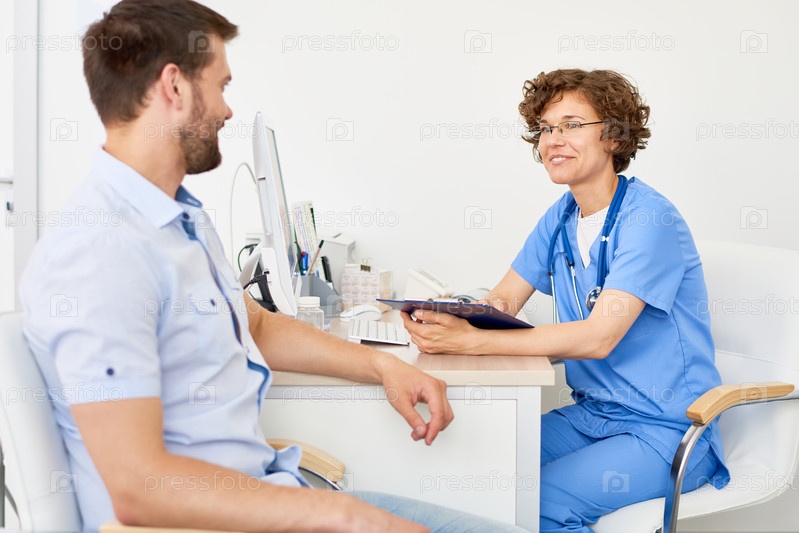 Молодая женщина разговаривает с пациентом