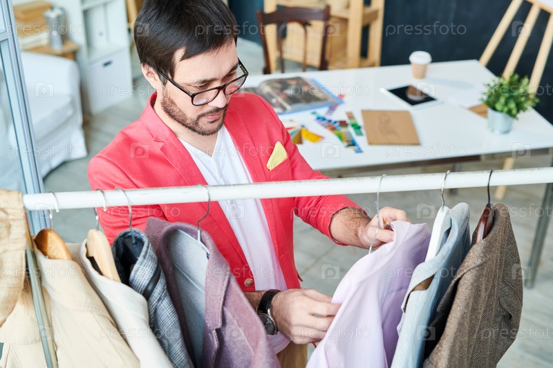 Дизайнер исследует одежду на вешалки
