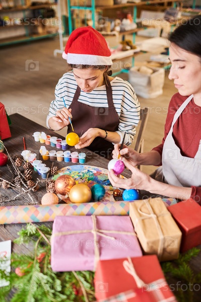 Женщины, рисующие рождественские украшения
