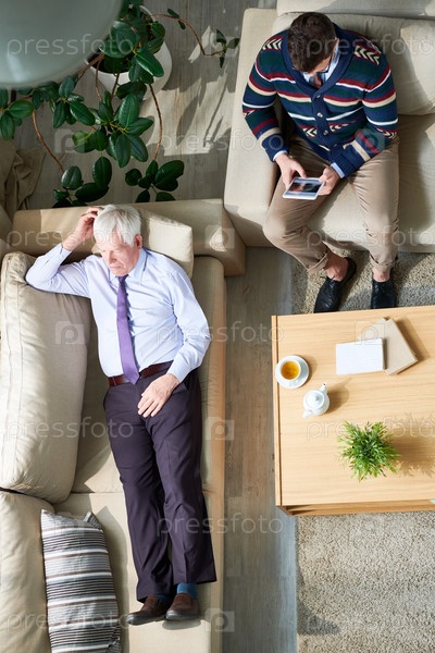 Старший бизнесмен делится своими проблемами с психиатром