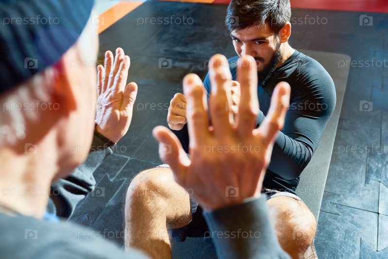 Молодой человек тренируется с тренером
