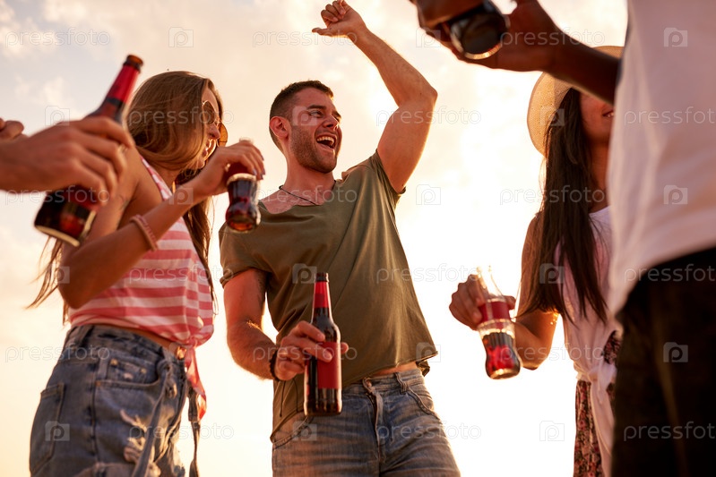 Веселые друзья наслаждаются вечеринкой под открытым небом
