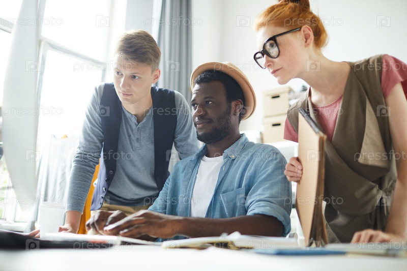 Группа дизайнеров, работающих в офисе
