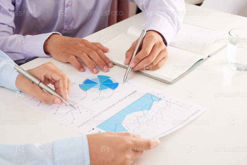 Работники сельскохозяйственных офисов, работающие с диаграммами