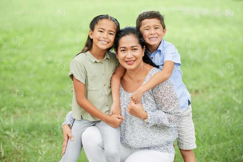 Азиатская семья в парке