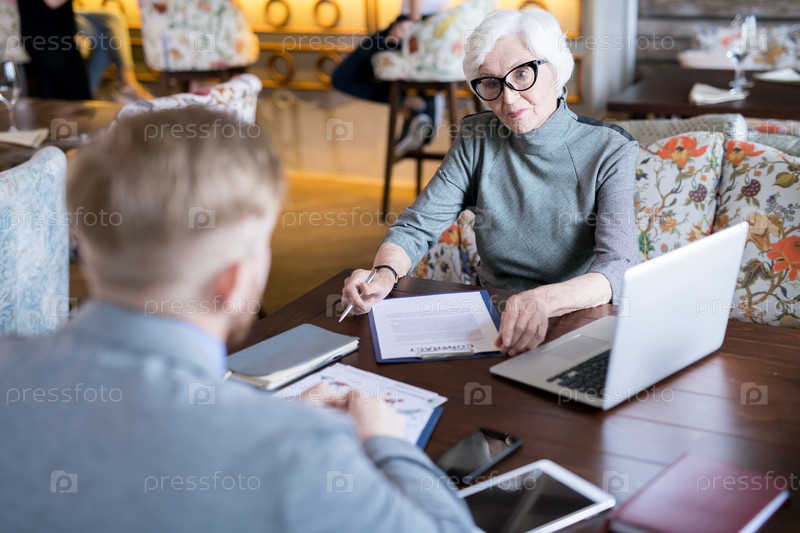 Старшая бизнес-женщина, подписывающая контракт