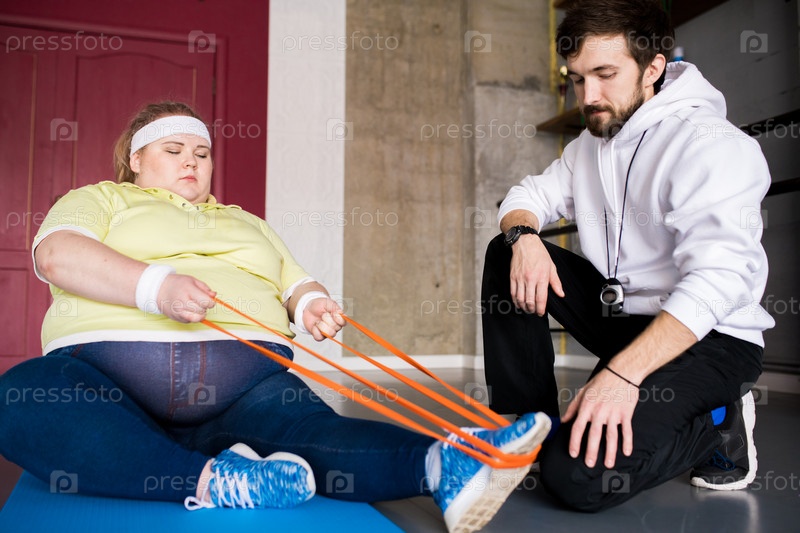 Женщина с избыточным весом в фитнес-классе