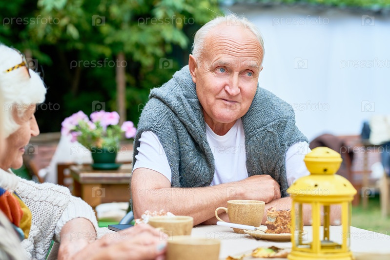 Старший мужчина в окружении друзей