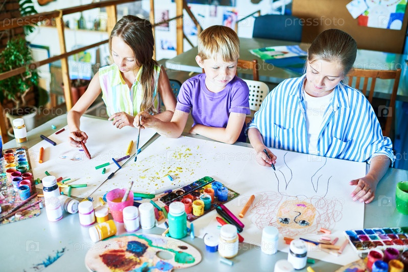 Школьники рисуют три картины