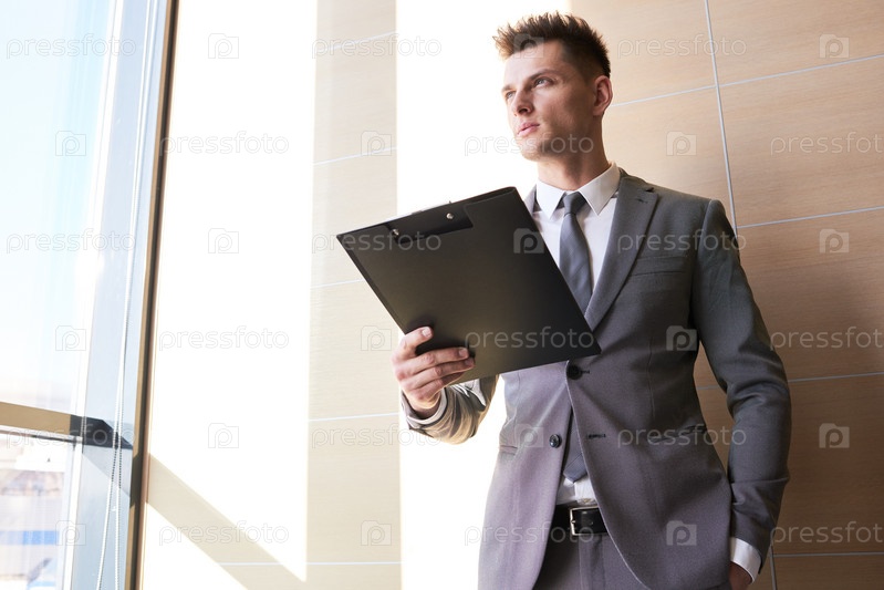 Красивый бизнесмен, держащий Клипборд